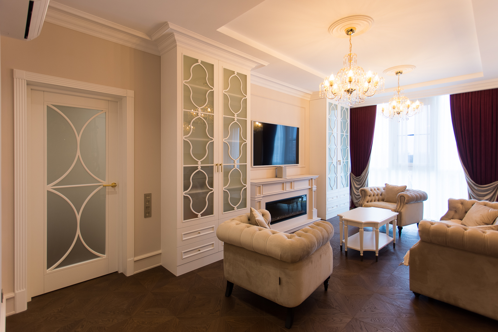 Мы производим классическую мебель, как встроенную так и корпусную, без ограничений по цветам и размерам, деревянные порталы и отделку для стен.